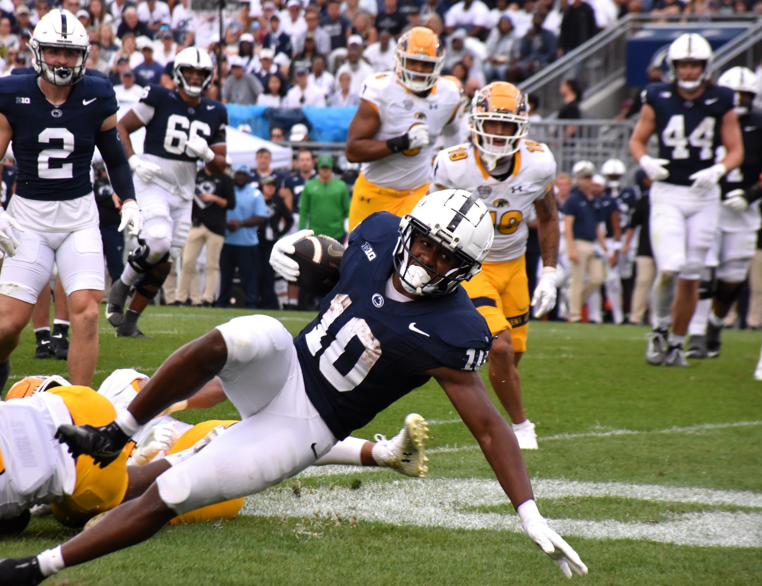 The Nittany Lions came up with a big stop, third string quarterback Tommy Ulatowski would pass the ball to Chrishon McCRay, Nittany Lions linebacker Tyler Edson would break it up. Kent State came up empty in five plays 21 yards in just 3:28. The Nittany LIons answered right back Pribula would find Klahil Dinkins in the back of the endzone for another Nittany Lions score to make it 42-0 with 4:55 remaining in the third quarter. Singleton ended the night with 81 yards teammate Allen would total 66 yards.